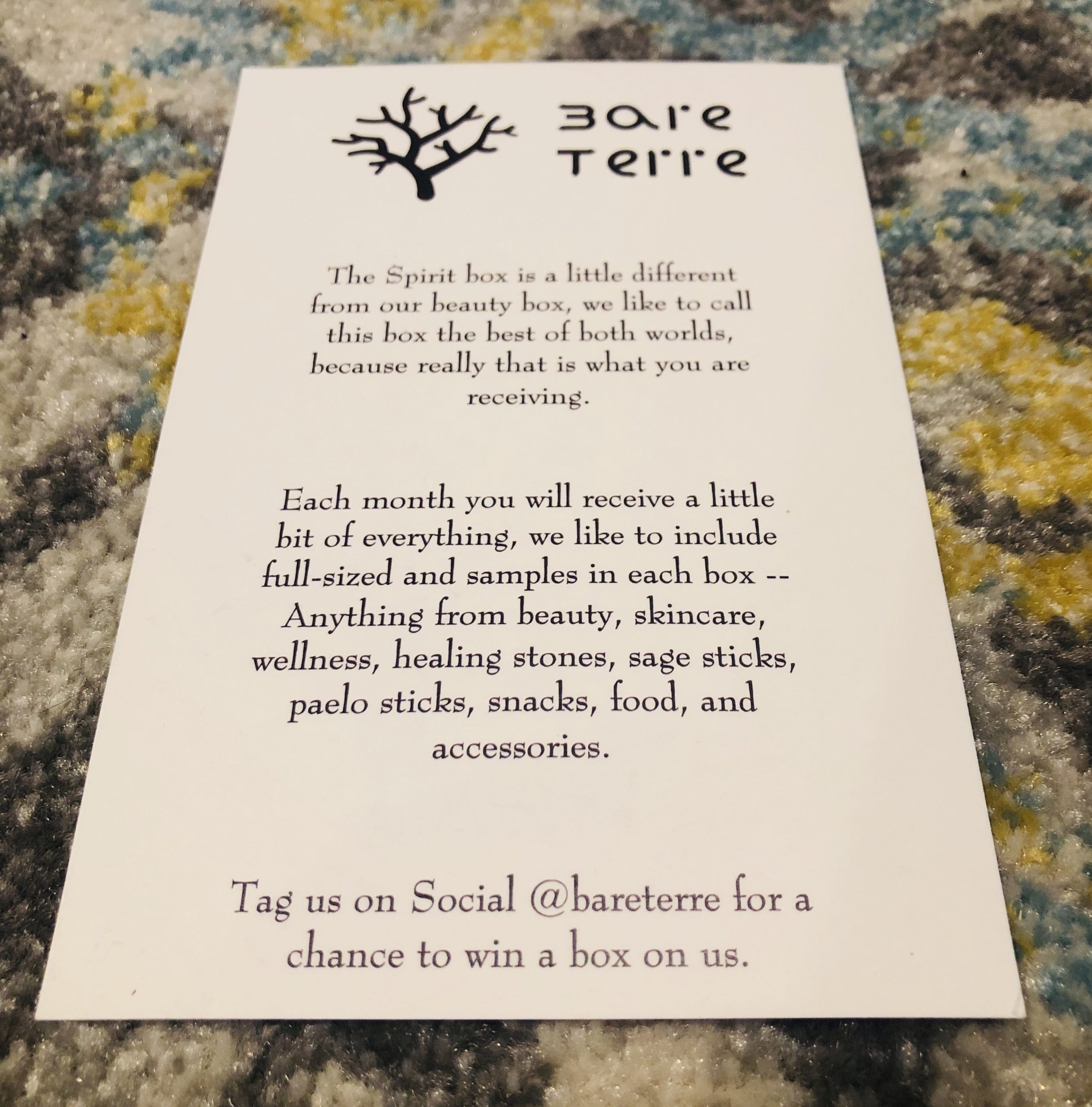 We were sent the Spirit Box edition from Bare Terre’s variety of boxes, so our thoughts and opinions will be based solely off the products we received from this variation.