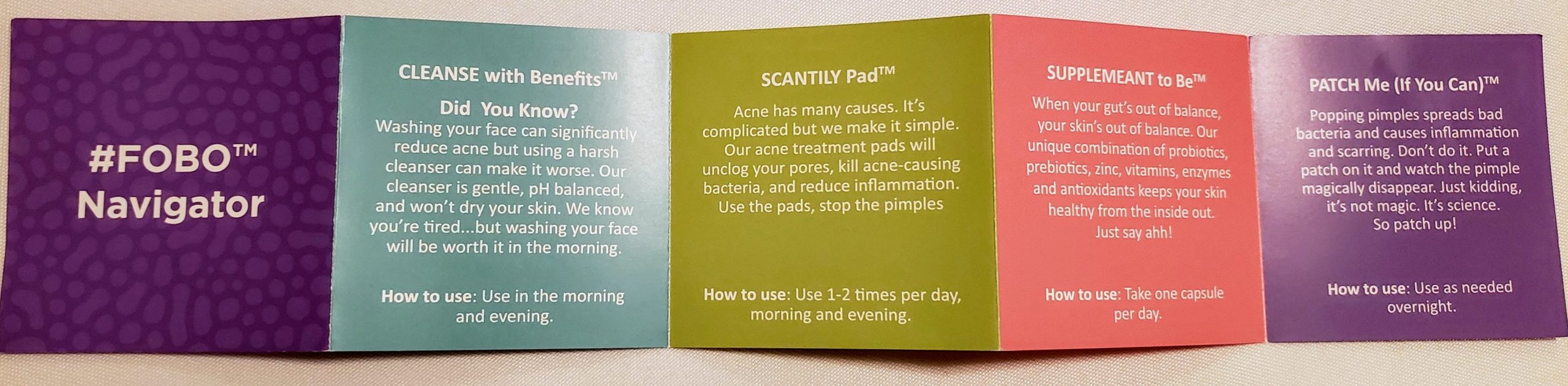 Website Description of Box: “Because one plan doesn’t fit all – We’ve put together these 4 power packed products to clear your skin that’s personalized to YOU. Depending on how commitment-phobic you are, choose one of the plans below to purchase your #FOBO kit monthly or save money and commit to clear skin because, hey, it takes time. We’re so convinced you will love it, but if you don’t, let us know and we’ll get you your money back. “