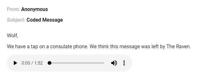 I guess you can say this is where the fun began. The message was all in Morse Code which I was not prepared for. And while this took the longest for me to solve, I have to say this a lot of fun! I may not be an expert yet but, once I got the hang of it, I was able to decipher the message. I had to repeat it quite a bit though but, hey, if I was a real spy, would anything be this easy anyway? Also, one more hint, as I mentioned above, there is a step you take with The Raven’s Card. It’s related to this website and yes, it involves Morse Code. While it was a bit frustrating at some points, once you get the message you’ll feel really cool just like I did.