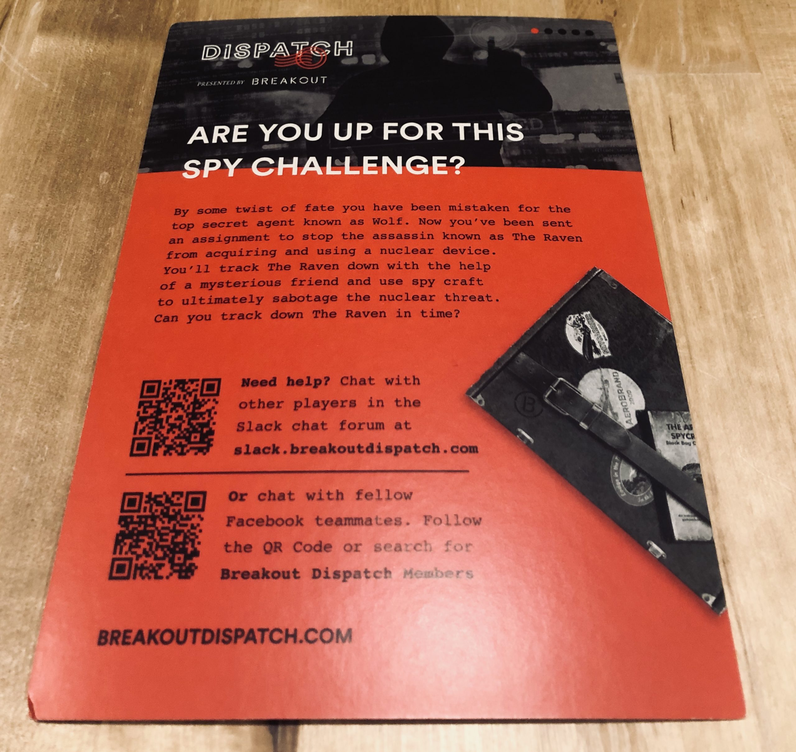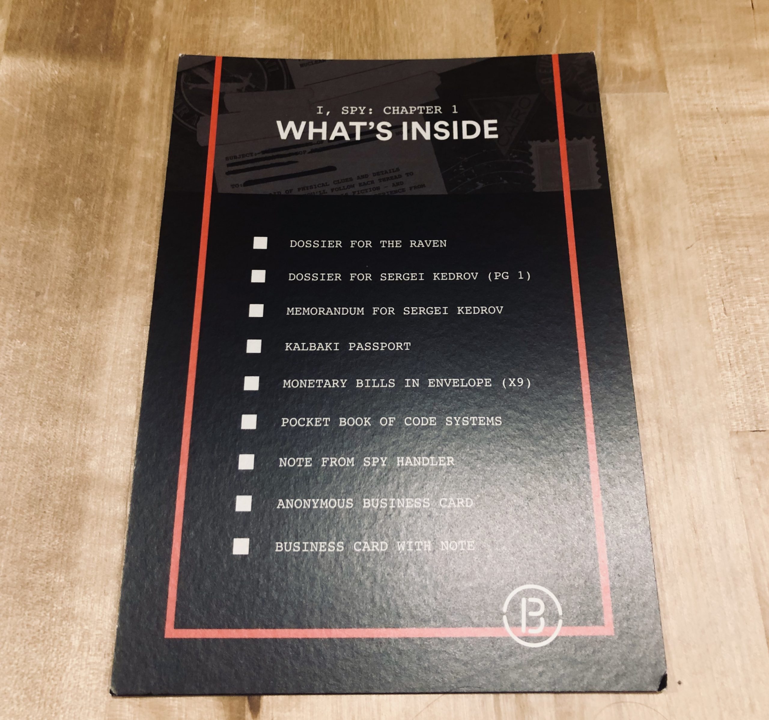 I’m always so amazed by how intricate and neat looking the boxes are. It really sets up the mood for the box and makes playing the game that much more fun. Dispatch explains this series as, “You’ve been mistaken for a top secret agent. Track down an assassin known as The Raven to stop his nuclear threat. Can you sabotage The Raven’s plan in time?”