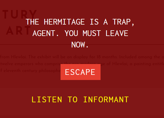 Now that I have the 4 digit code solved, it’s time to go to the Hermitage webpage that ended up being a warning and test it out. Did I solve it correctly?