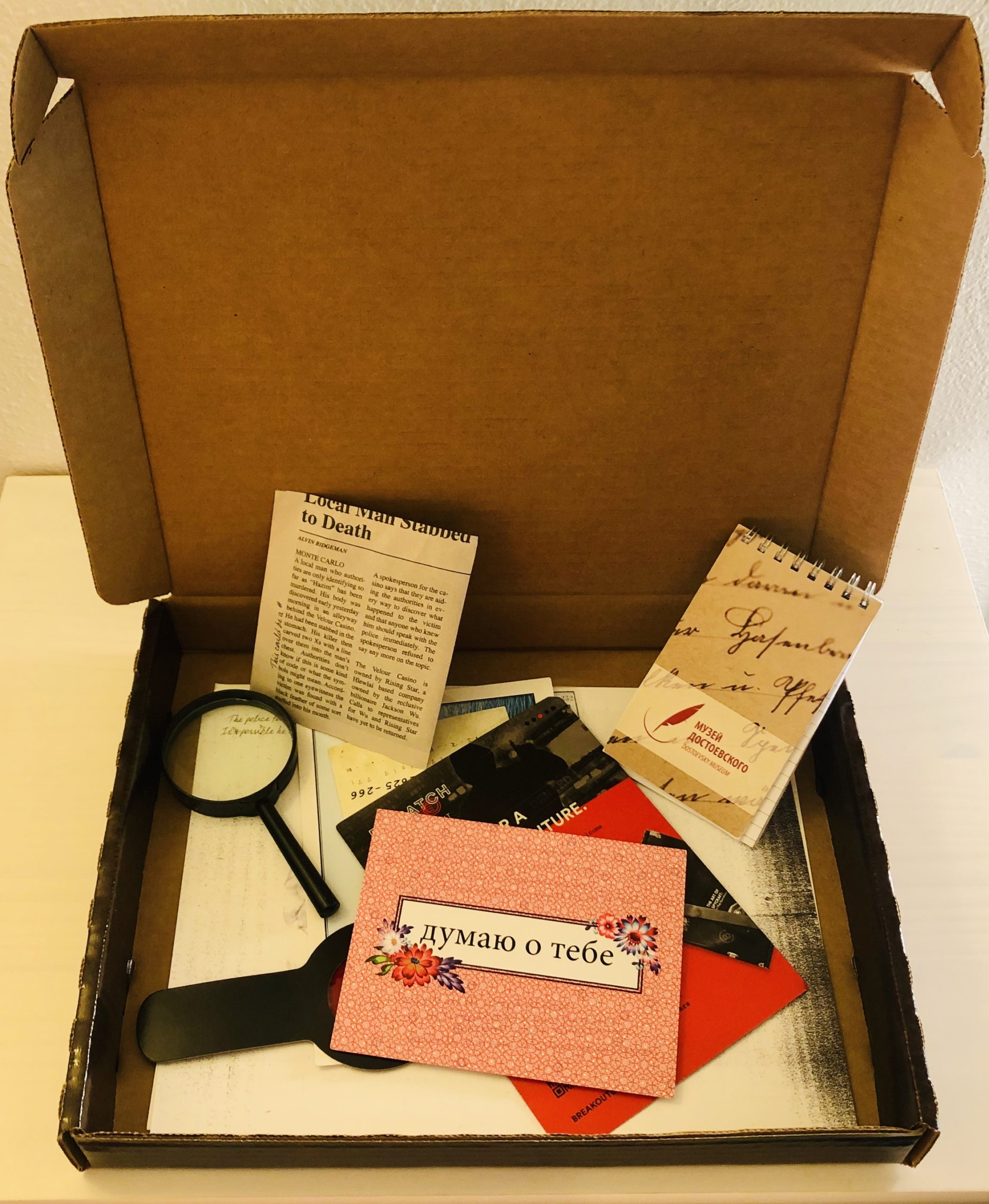 Website Description of Box: “Imagine a new kind of escape, one you can experience in the comfort of your own home – introducing Dispatch by Breakout. It’s a step apart from everyday entertainment—better than a book, more engaging than television—think of it as an immersive mystery where you wear the detective hat.
