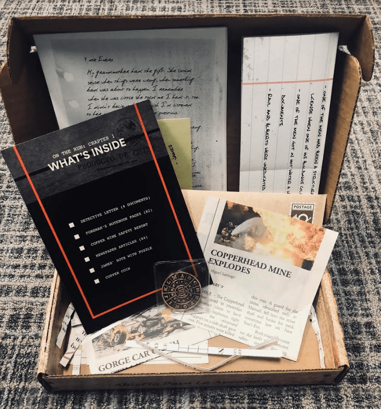 Taken from the Overview you receive in the box “The mystery continues! The contents of this box pull you deeper into the strange disappearance of your closest childhood friend, who also happens to be the suspected killer of a well-known heiress. With the aid of physical clues and details embedded on the web, you’ll follow each thread to deduce what is fact and what is fiction…”