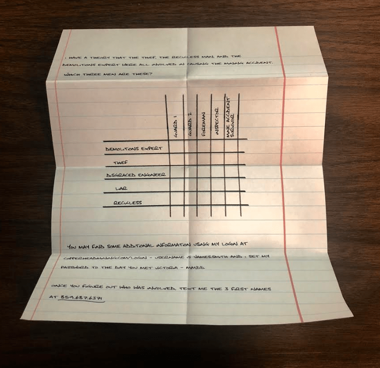 The introduction box is pretty amazing, in that it completely sets up the story for you, and gives you a ton of hints with some being pretty obvious, while others being more subtle. The synopsis of this box is your best friend James Smith, is being accused of murdering his new wife, Victoria Van Kress. James and Victoria met after James began working for her family, the Van Kress Family, who are famous for having money and owning a mining company. On their honeymoon, Victoria was found strangled to death in their hotel room. James was apprehended but, has now escaped and is nowhere to be found. Now it’s up to you, as the best friend, to figure out where he is and help him prove his innocence.