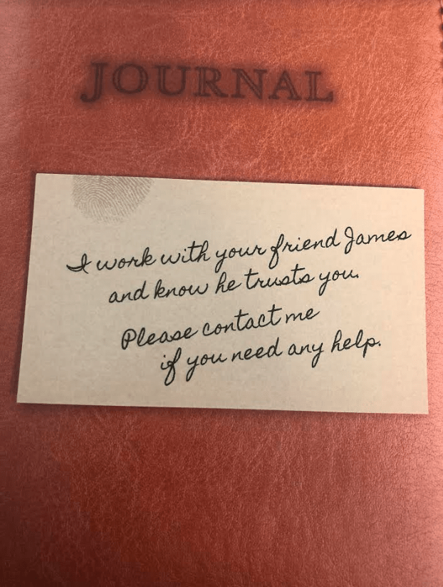 I was stuck on this clue for a while. On the back of this document, there’s a puzzle to figure out. Once you figure out the puzzle, there’s a number that you text where James will confirm if you have the answers correct. You will also want to take advantage of the website on the back it tells you to go to.