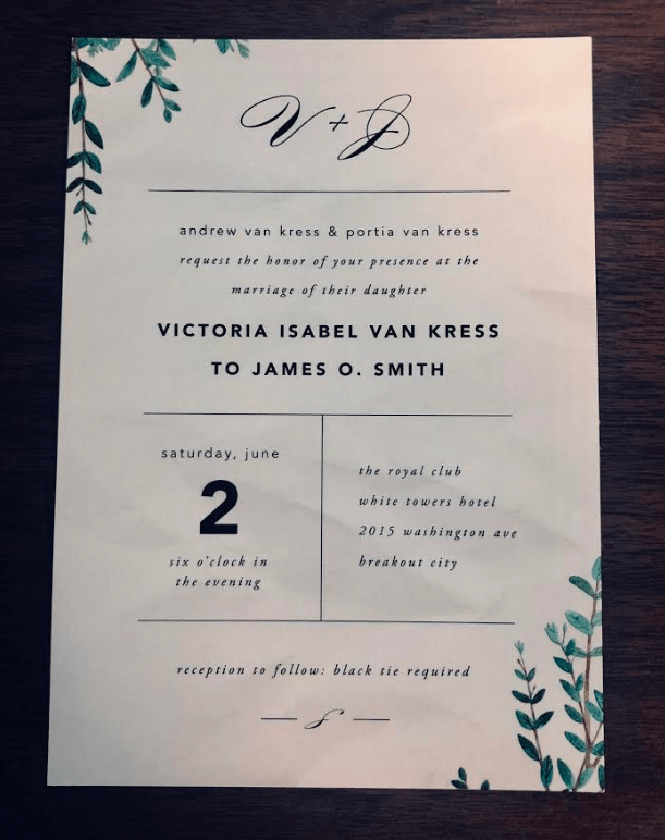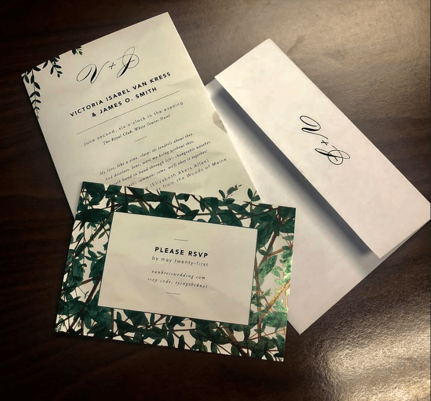 At first glance, nothing seemed ‘out of the ordinary’ from these cards. In fact, they are really cute, and would look lovely for a wedding! However, if you read the details within them, you’ll uncover some hints. I will give one that won’t give away too much: Visit their wedding website and use the R.S.V.P. code that is printed on the R.S.V.P. card.