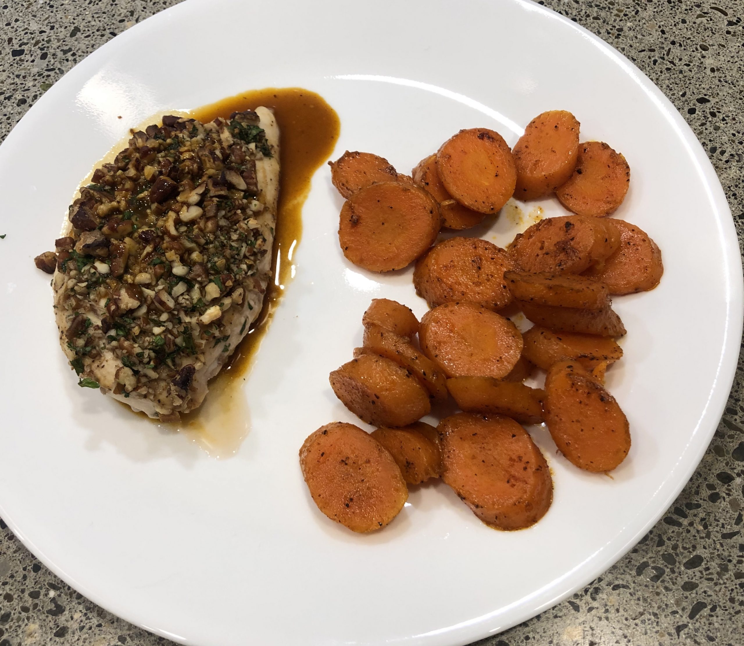 Meal 1:  Pecan-Crusted Chicken with BBQ-Spiced Carrots