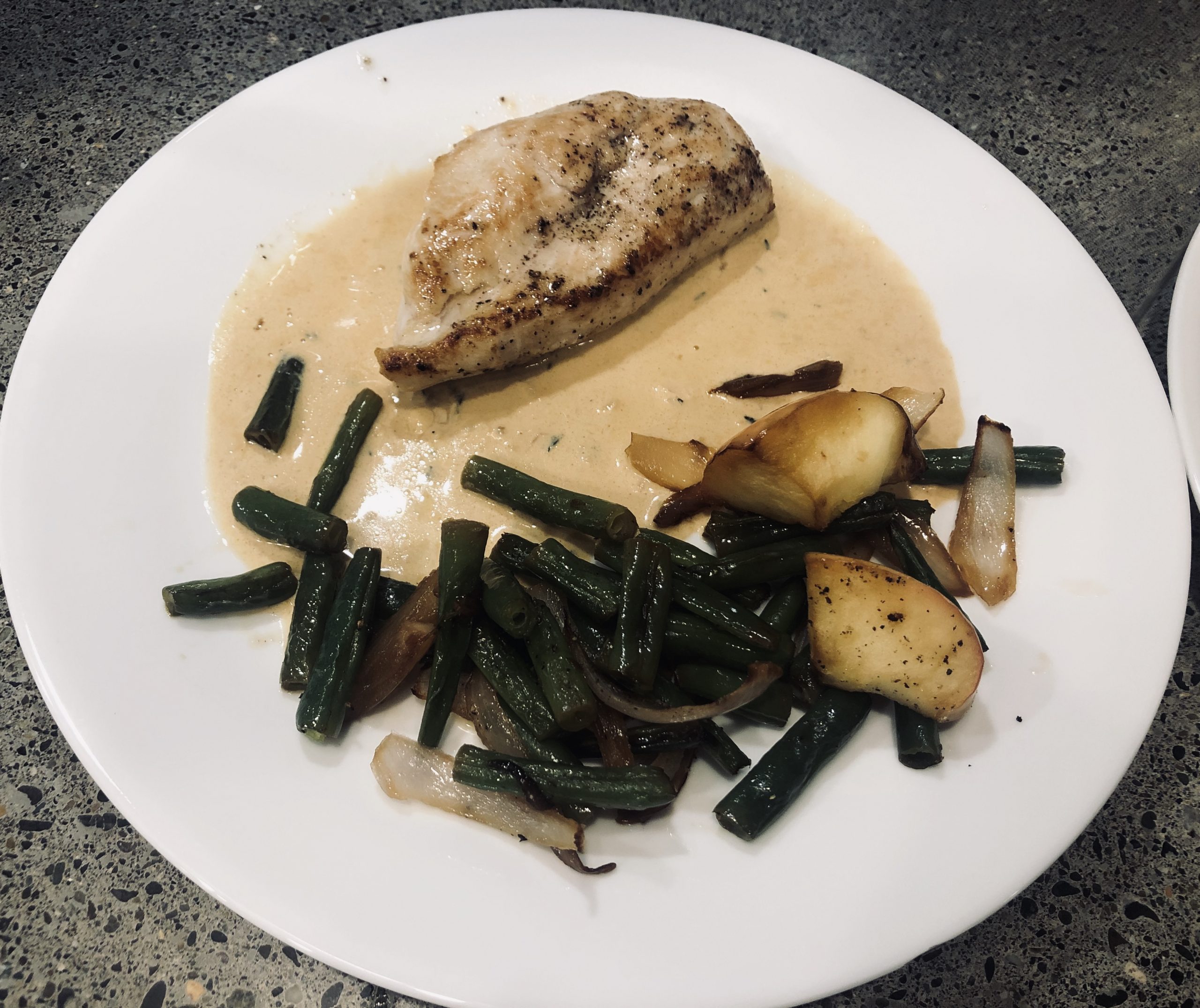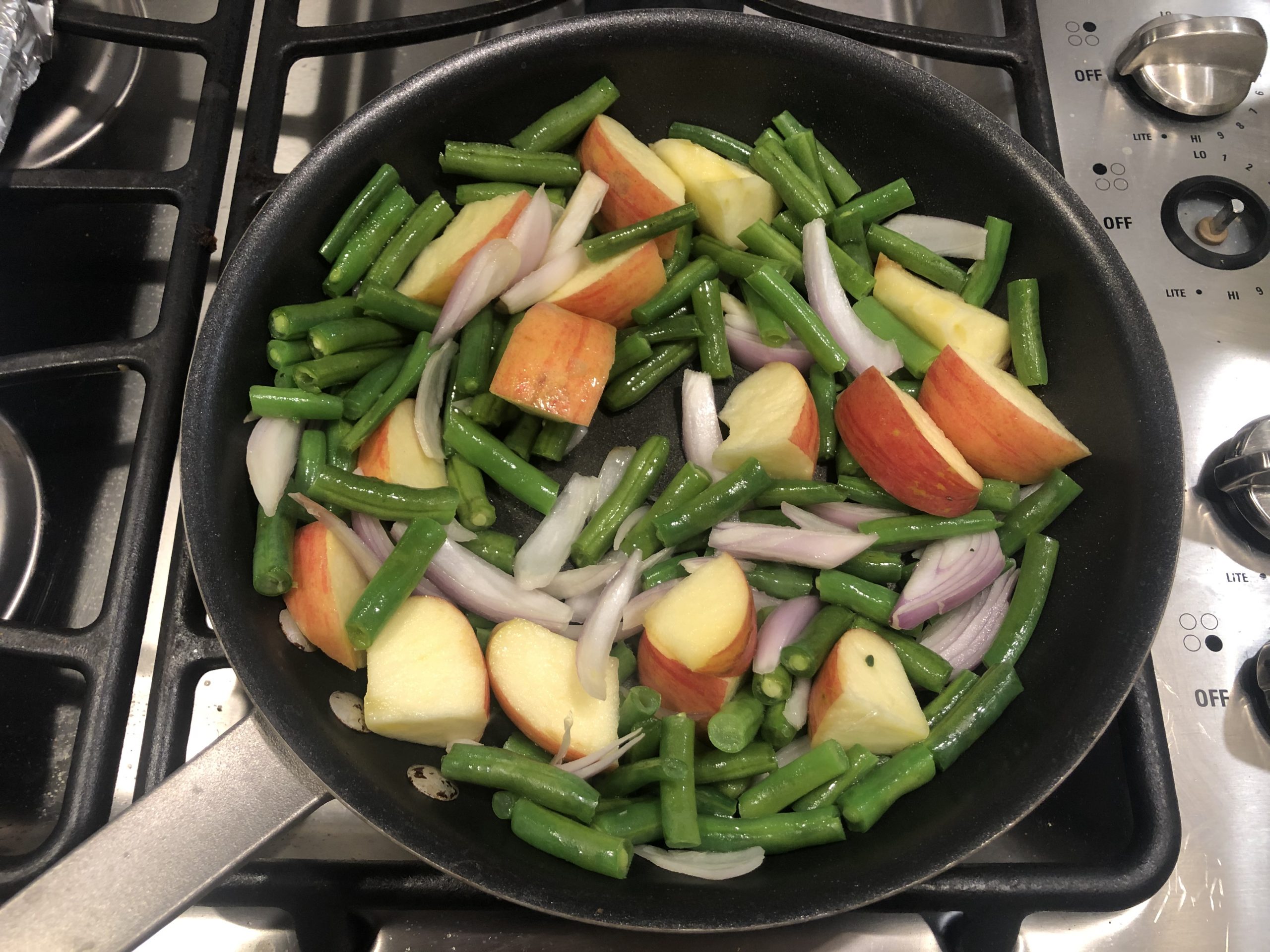 As you can see, it doesn’t look like the picture it came with but, I can confirm this recipe was delicious! The sauce was amazing and I keep dreaming of making it again. Oh, and apples and green beans also go well together. Who knew?