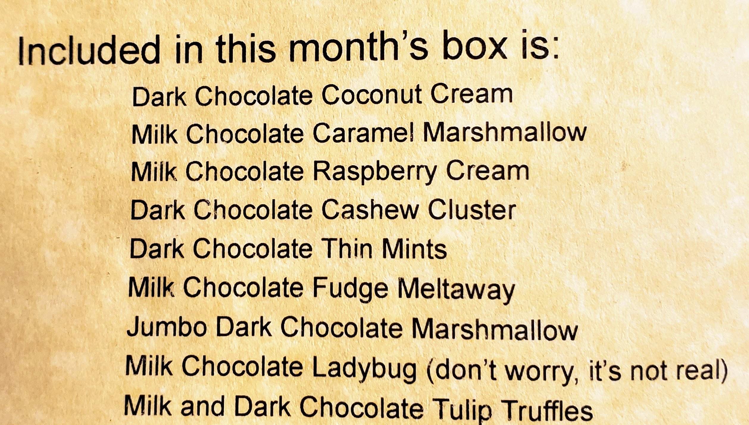 One of the issues that I had with this box in June 2018 was the lack of information on what I was eating. I was happy that this time around they did include a list of flavors included in the box. And most of the flavors could be easily matched to the items as I tasted each one.