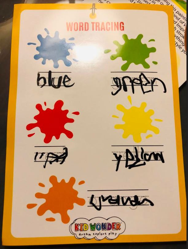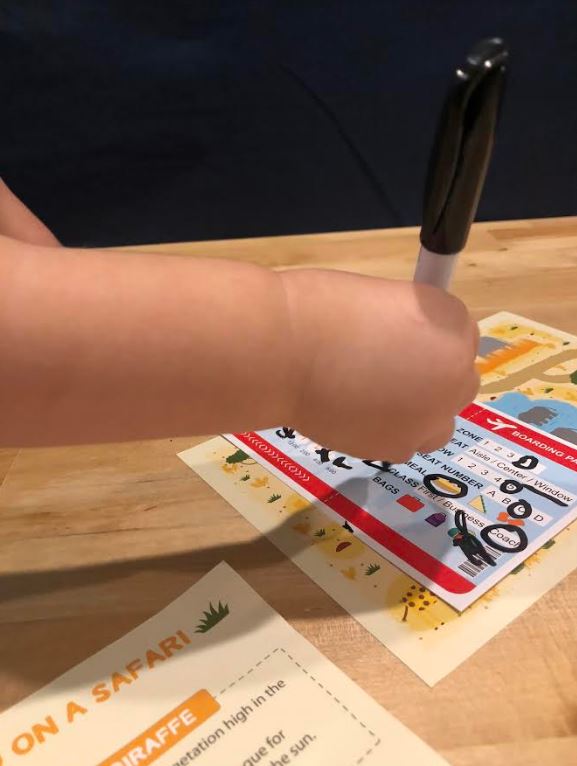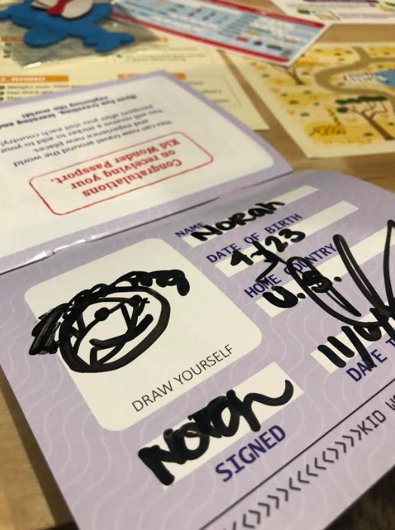 Next, Norah wanted to fill out her passport. I loved that Kid Wonder included this dry erase marker so we could fill this out together.