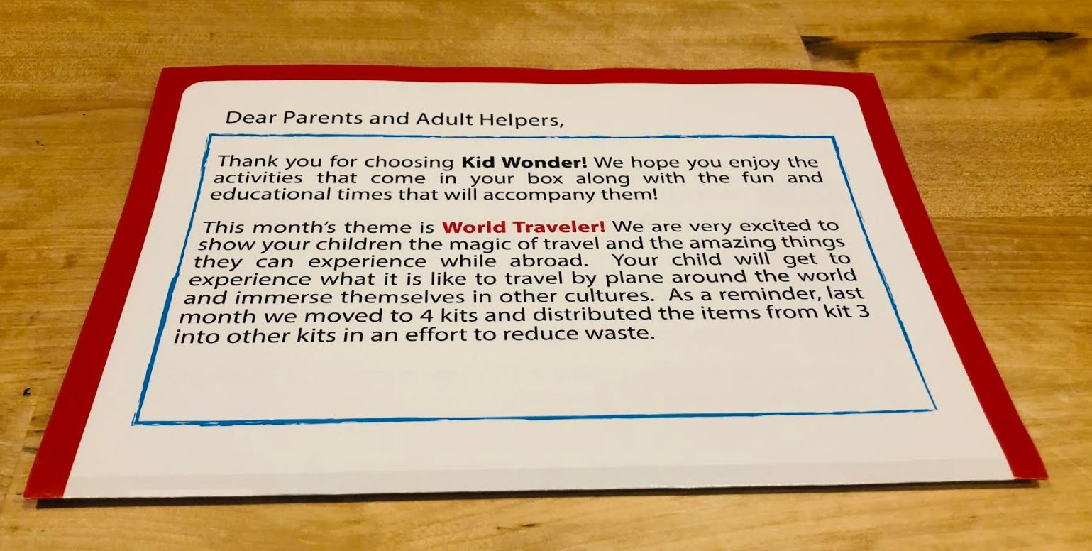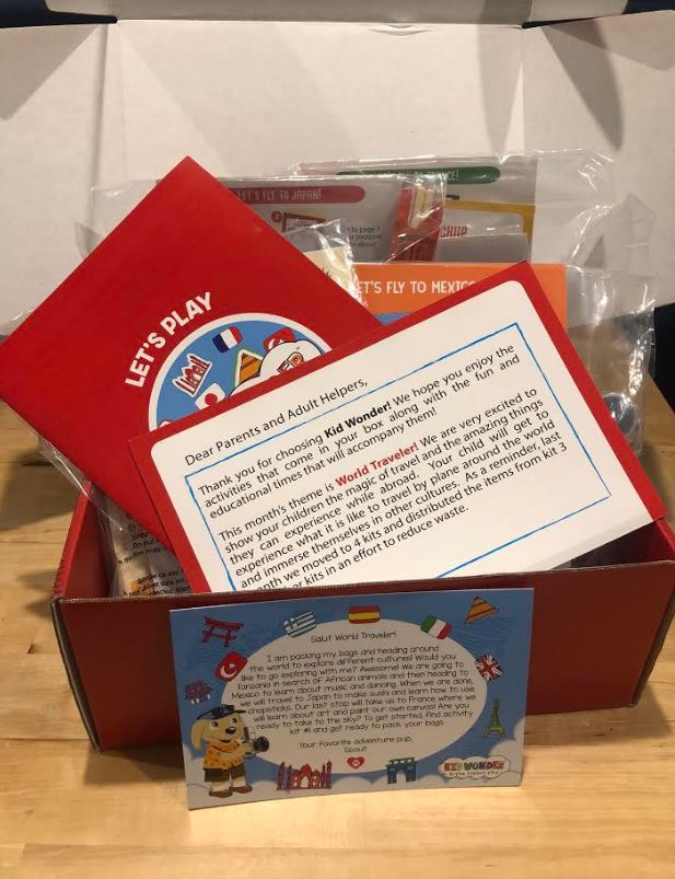 Hey everyone, Noelle here. I was fortunate enough to get to try out the box this month with my daughter Norah. The theme of this month’s box was World Traveler, and immediately I was impressed with all the details on the box, and how colorful everything was.