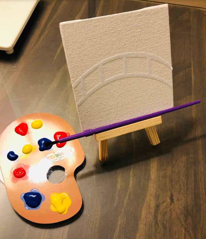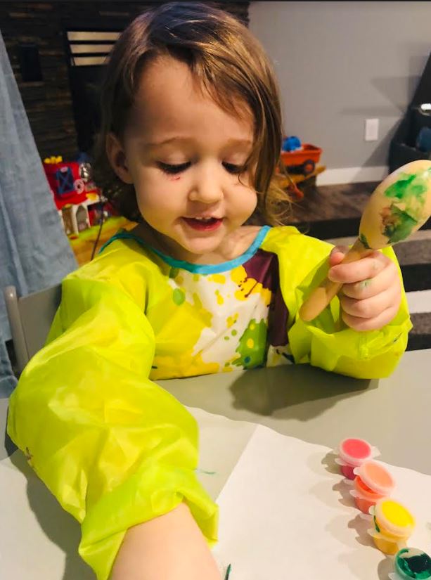 Again, I love how Kid Wonder graciously supplied everything needed. My only negative thing to say about the supplies is the apron they provided to paint in was really weird, or maybe we received a ripped one? It wasn’t possible to wrap it around Norah, so I opted to use the one we already have. I love how we also have a new paintbrush and fresh paint left over from the activity to use in the future.