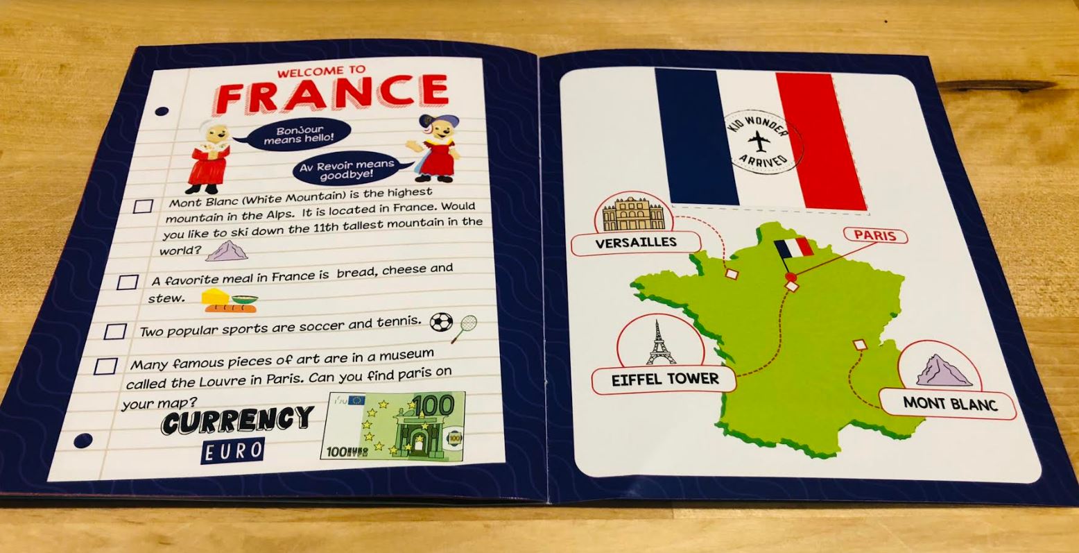 Our last stop on the journey included going to France! I love French culture, and I enjoyed getting to read more about France with Norah. I also knew, once I discovered the contents, that she would have a blast painting again.