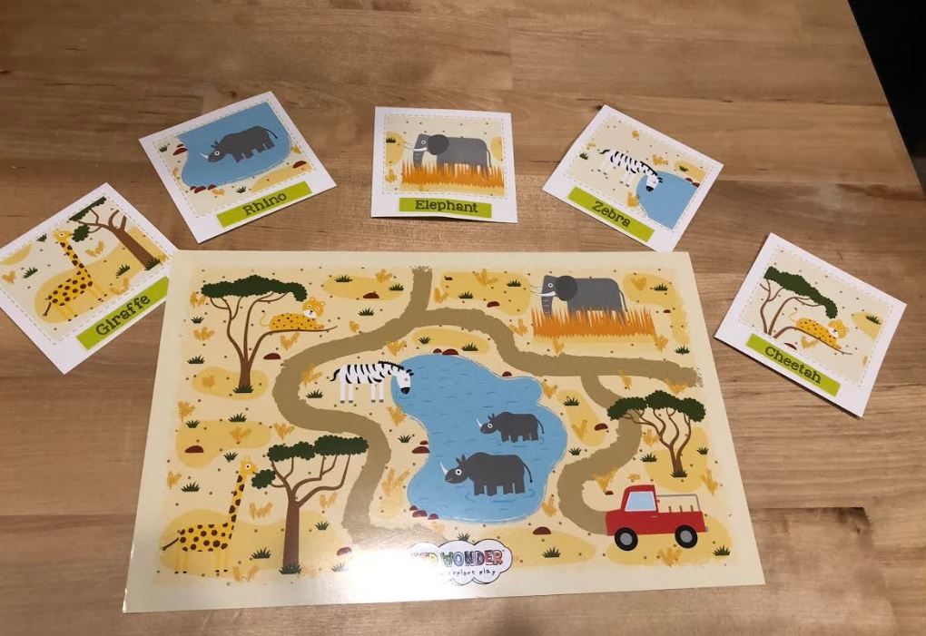 Next, we moved on to the game/question portion of the activity. While my daughter is on the younger side, she recognized most of the animals and liked playing this game. She loves giraffes and we recently saw one at our local zoo so she was pretty excited to point that one out to me. She also didn’t really know what a cheetah was, but, she told me he was “very cute!”