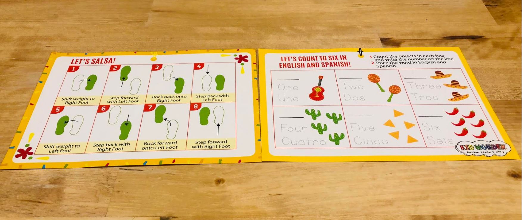 Off to Mexico, we go! Our first activity was to read and learn more about salsa dancing! Cute and fun! We also worked on counting in English & Spanish. Norah is able to count to 15, so she really liked learning how to count in Spanish. I love that this was included so she could learn something brand new.