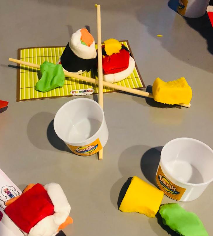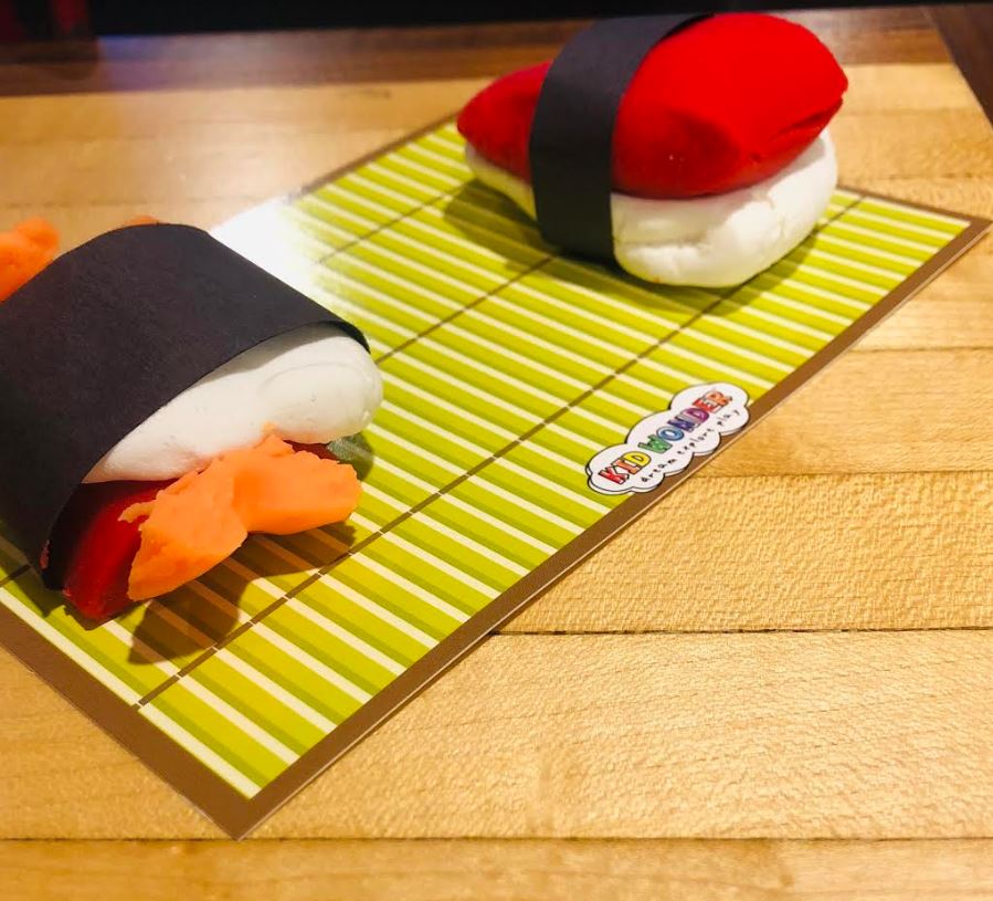 As you can see, the project we had was to make sushi! Kid Wonder graciously supplied everything we needed to complete this activity, as well as teaching Norah how to properly hold chopsticks.