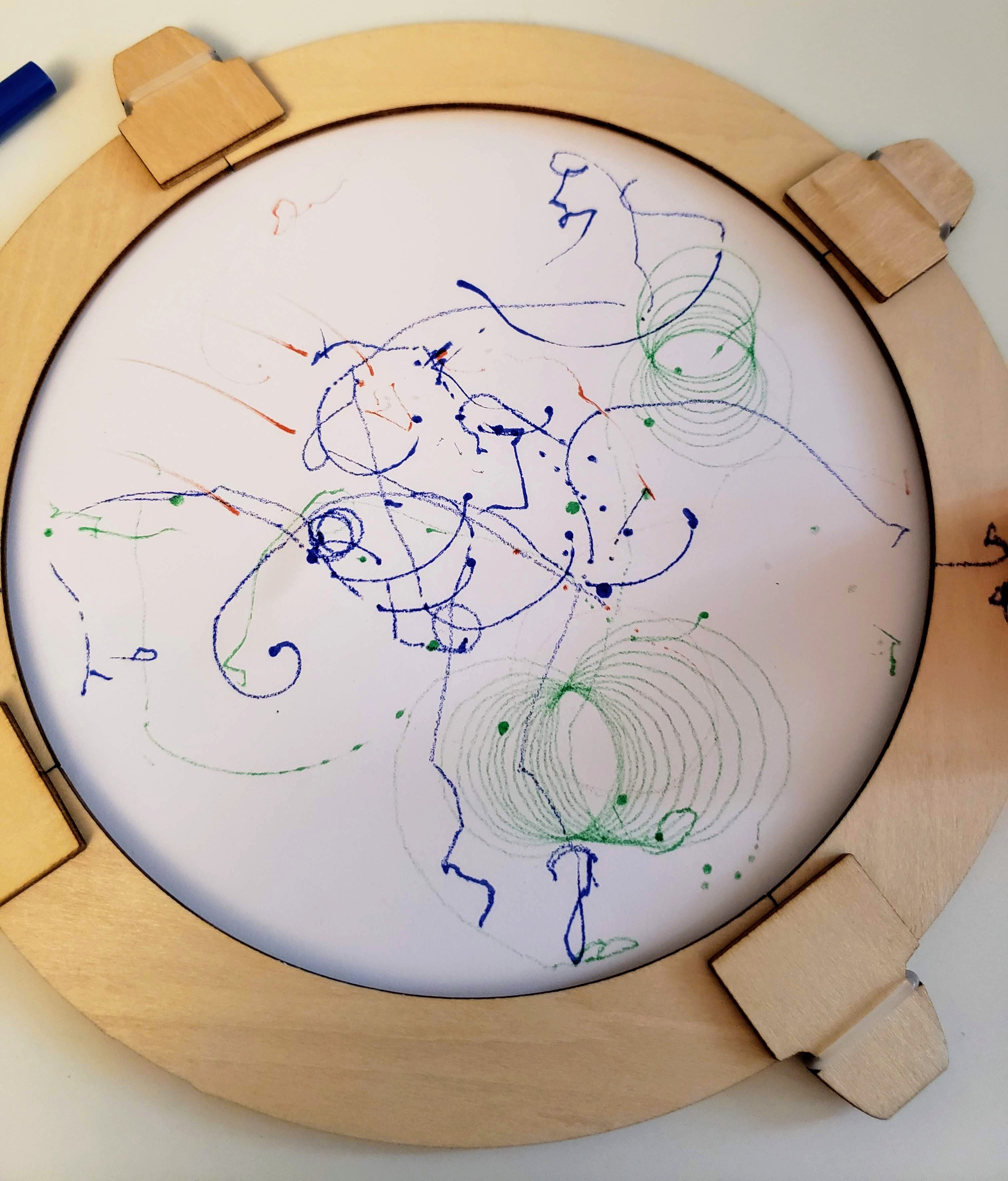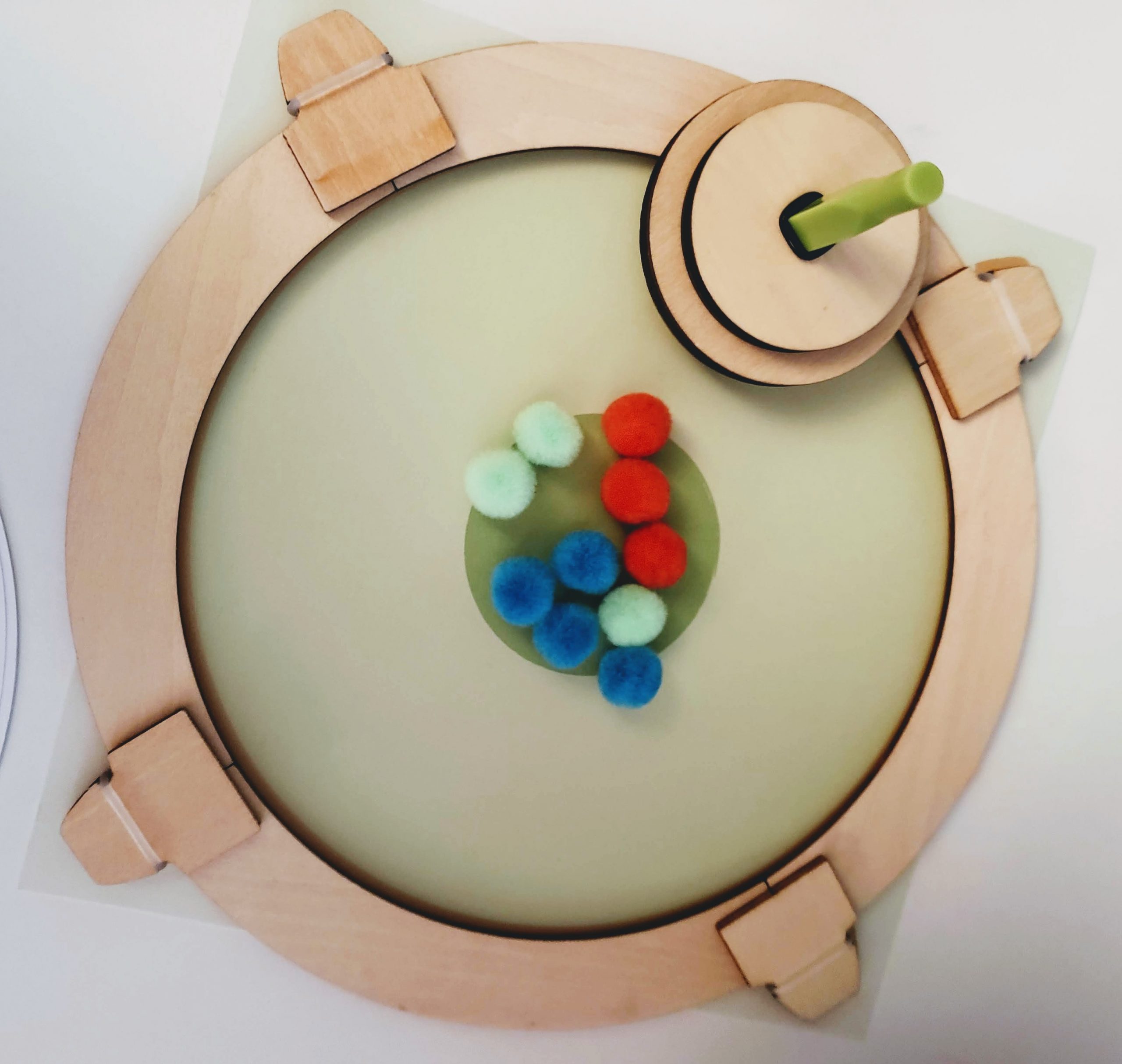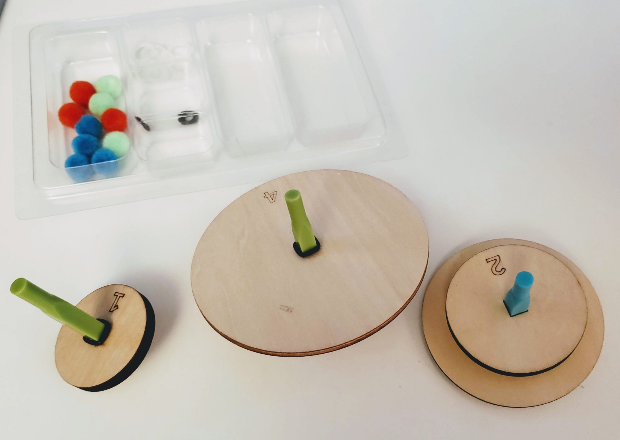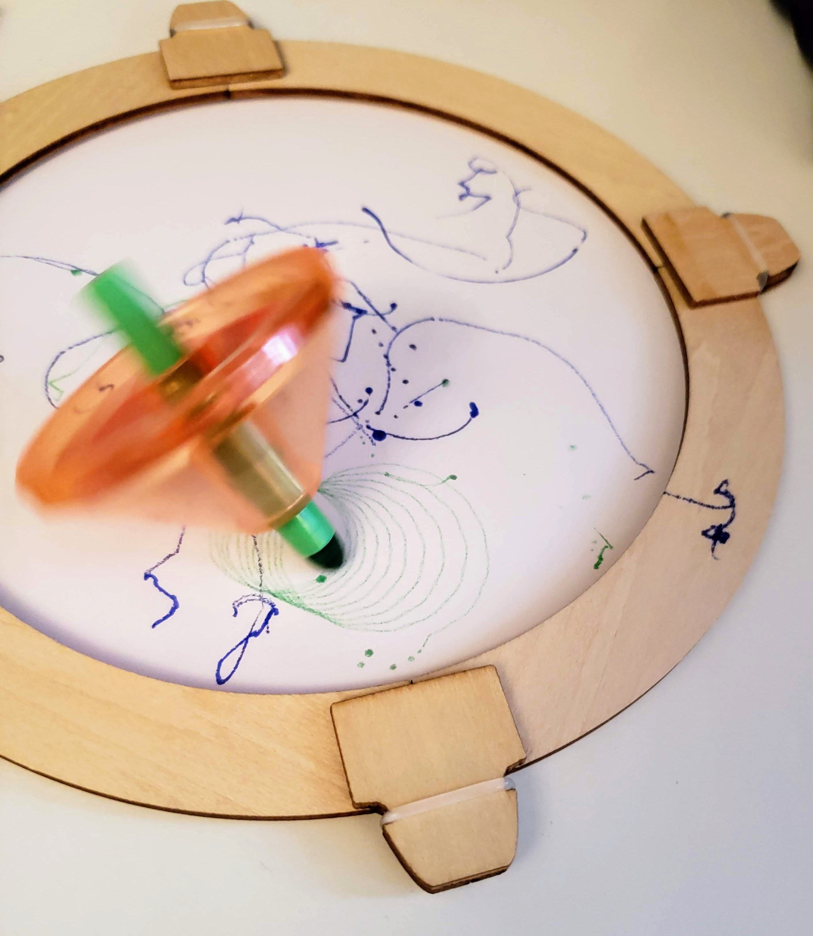 Our next activity involved some games to play with our newly developed tops. I liked that Kiwi Crate included the games since it kept the fun going even longer. Creating the game frame was a little tough for my son’s little hands, but I was able to assist just enough to help him complete it. I loved the double sided game board. The first game was our favorite, we had to try to knock all the pom pom out of the frame in as few spins as possible. We laughed way too hard at the pom poms flying across the table! The other game that we enjoyed was using the included blank paper circles and markers to try to create spiral art. It was a little hard for even me to get the top just right, but once we did it looked so cool we kept on trying!