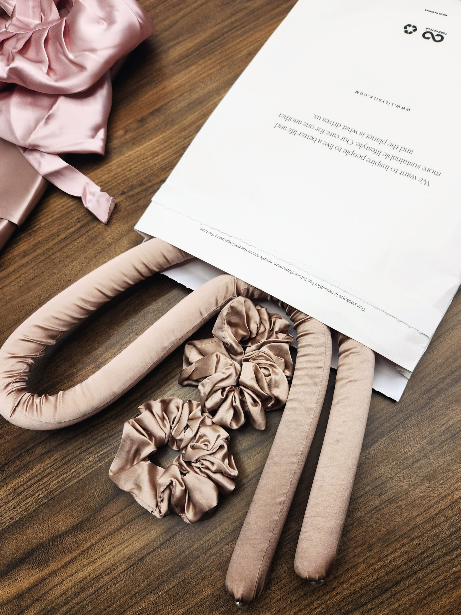 I can’t go a day without seeing heatless curls featured on my TikTok FYP. At one point I attempted the legging method, but my hair was left more frizzy than curly. After hearing that silk could fix that issue, I knew I needed to give the LILYSILK Heatless Curler. This Silk Beauty Set for Hair included the Heatless Curler (with scrunchies), a Momme Charmeuse Sleeping Cap, and a Momme Charmeuse Silk Pillowcase. Basically, I was set up for success with this set.
