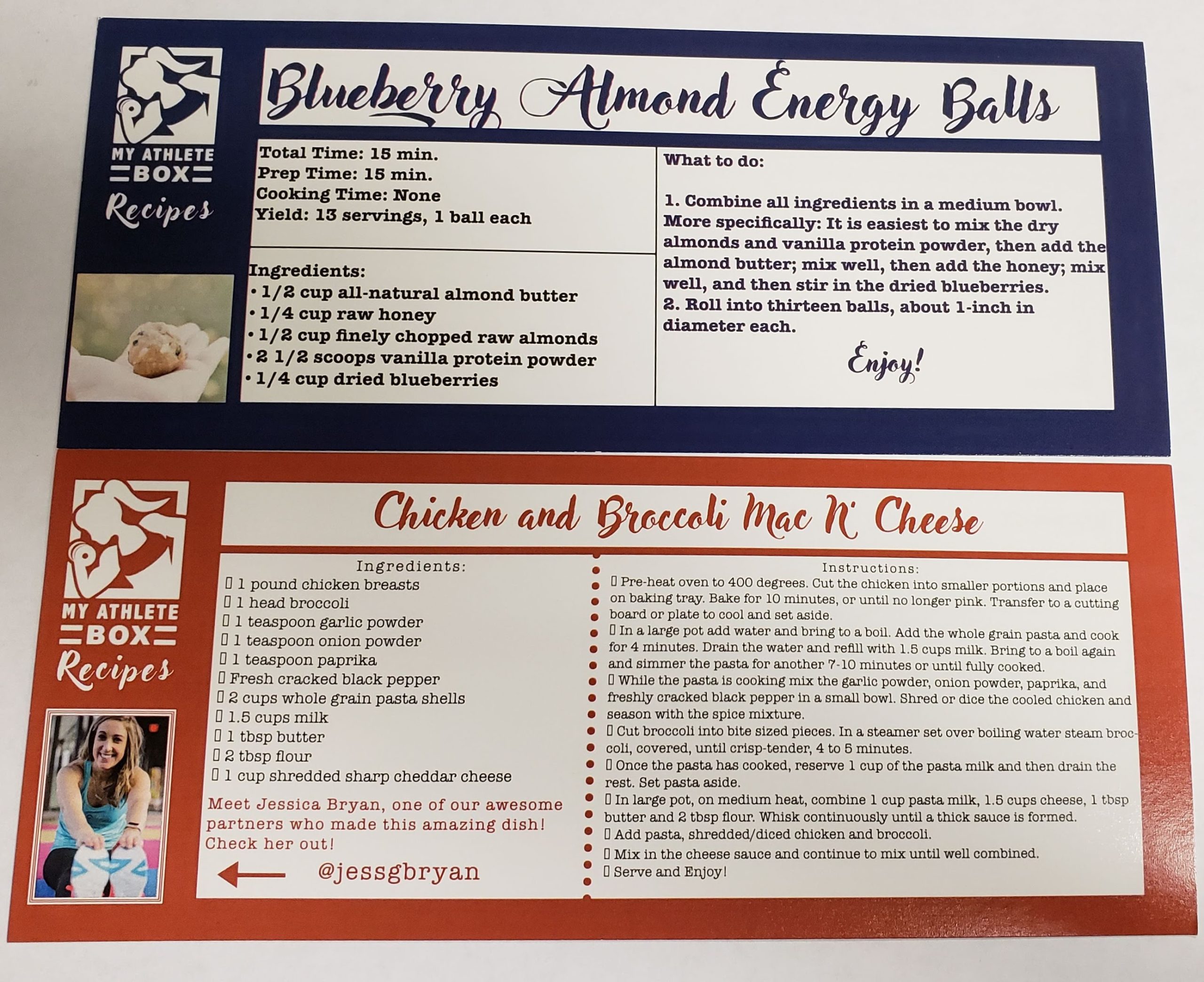 See the below gallery with pictures of all the neat inserts in our box. My favorite was the mirror sticker that reads “Keep your squats low and your standards high” since I could see this being a great motivational piece to add to a work out room. I thought it was cool that My Athlete Box also included work out cards and recipes. All of these inserts would make it easy to get on track with personal fitness goals. I can’t wait to try the included recipes!