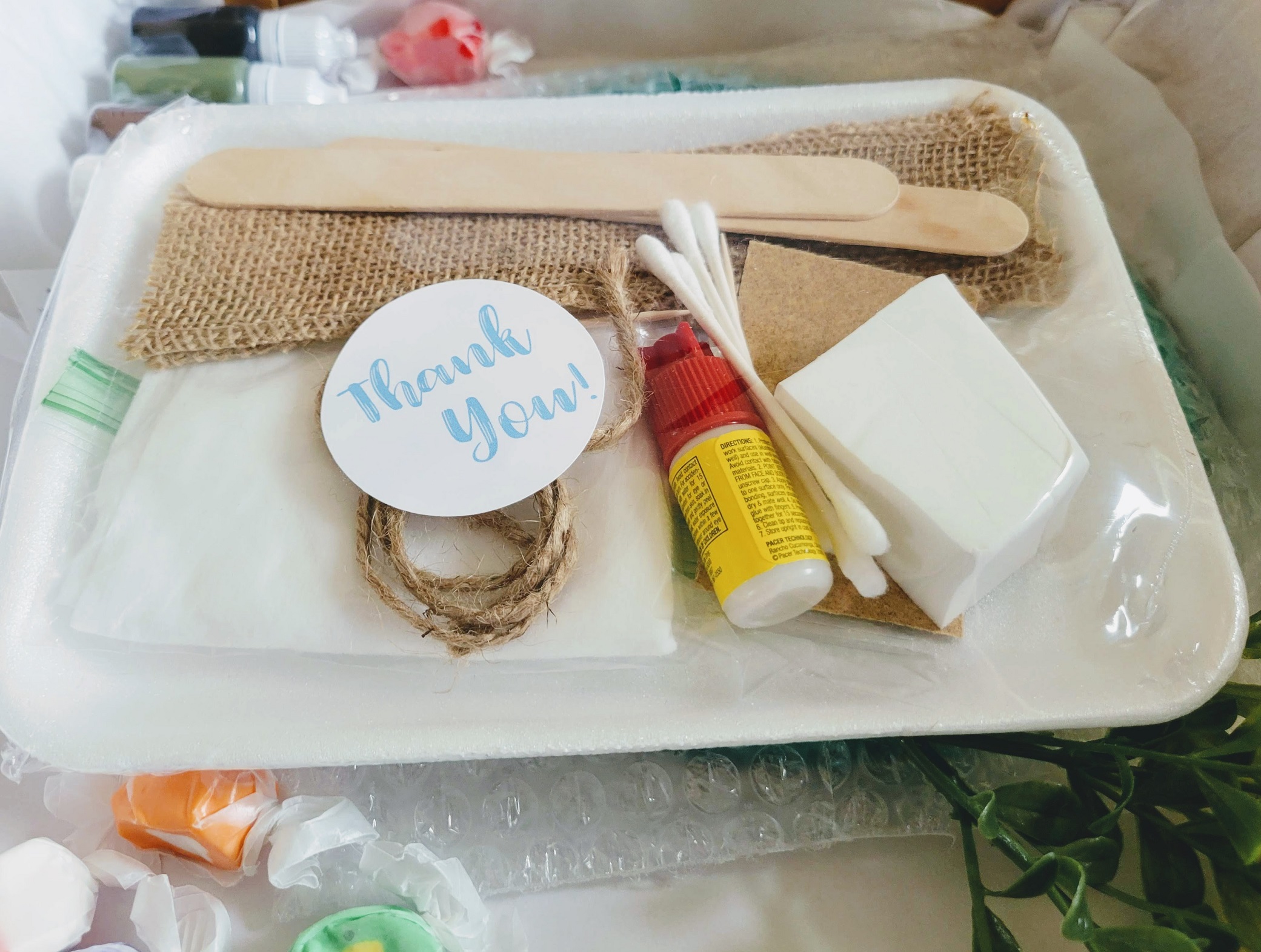 We include everything you need to put together your project. From the paint and ribbon – all the way to the superglue. That means no last minute runs to the craft store! Each box is hand-packed by us to be clean, organized, and stress free.”