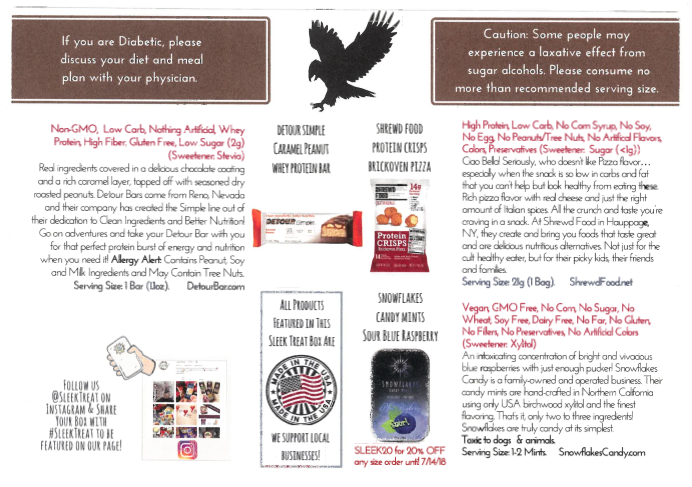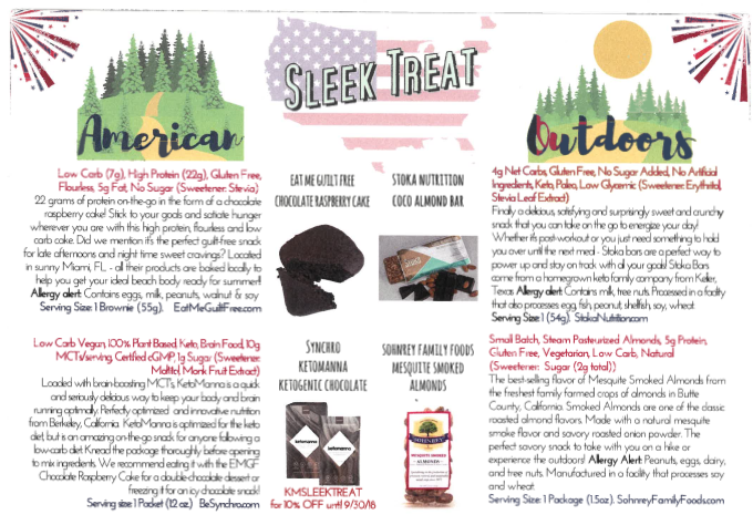 Website Description of Box: “When you sign up for Sleek Treat, every month you will receive a box of low carb hand-curated confections that we scoured the world for. We even taste-test products to make sure you love your box!”