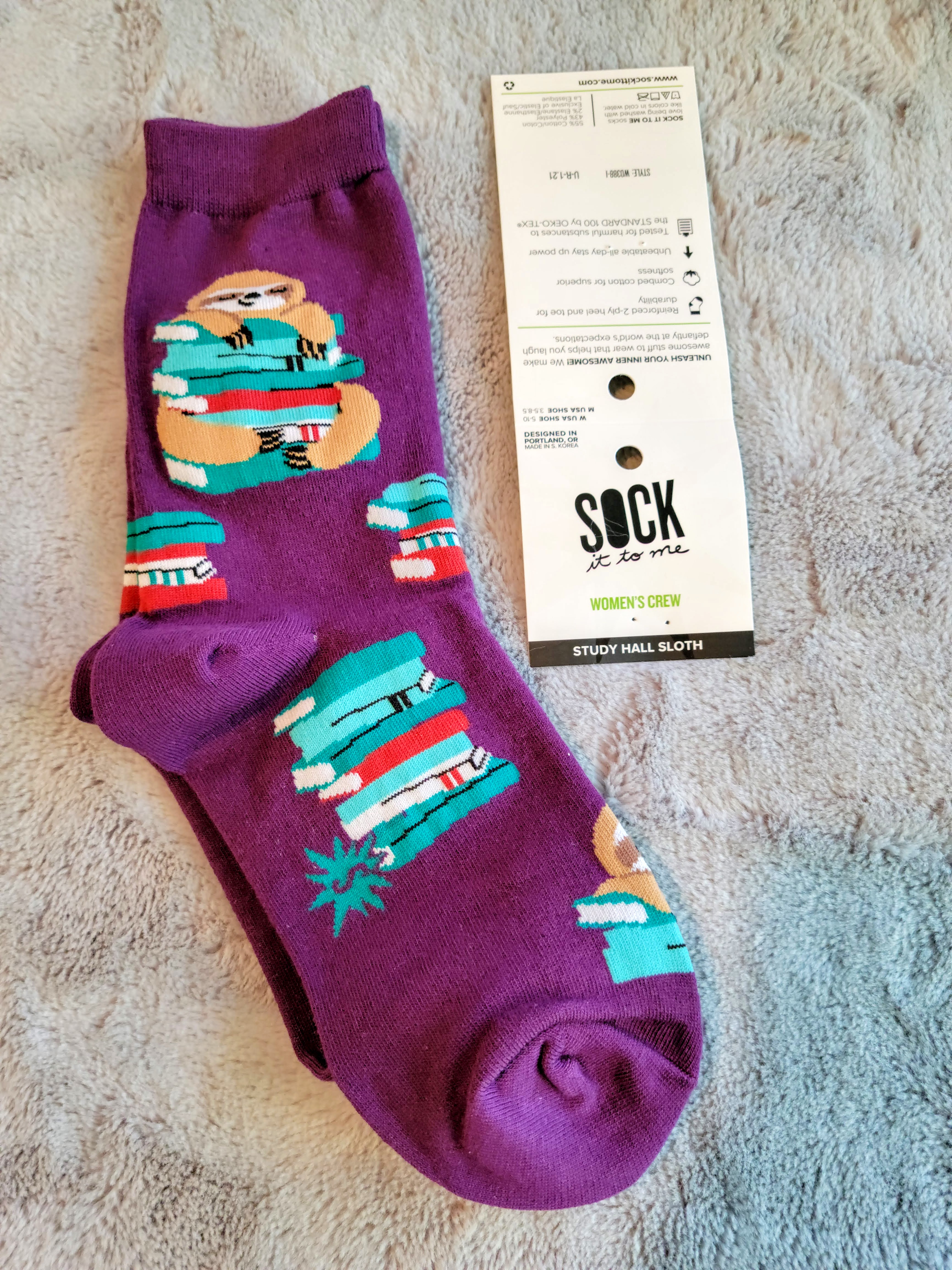 Quirky socks are something that really brightens my day. It is one of those simple pleasures in life that makes me smile. But when the socks are also comfy and fit well…that is icing on the cake! Sock It To Me sent us their May 2021 box for review and I was excited to see the book theme. The added bookmark was a nice touch too.