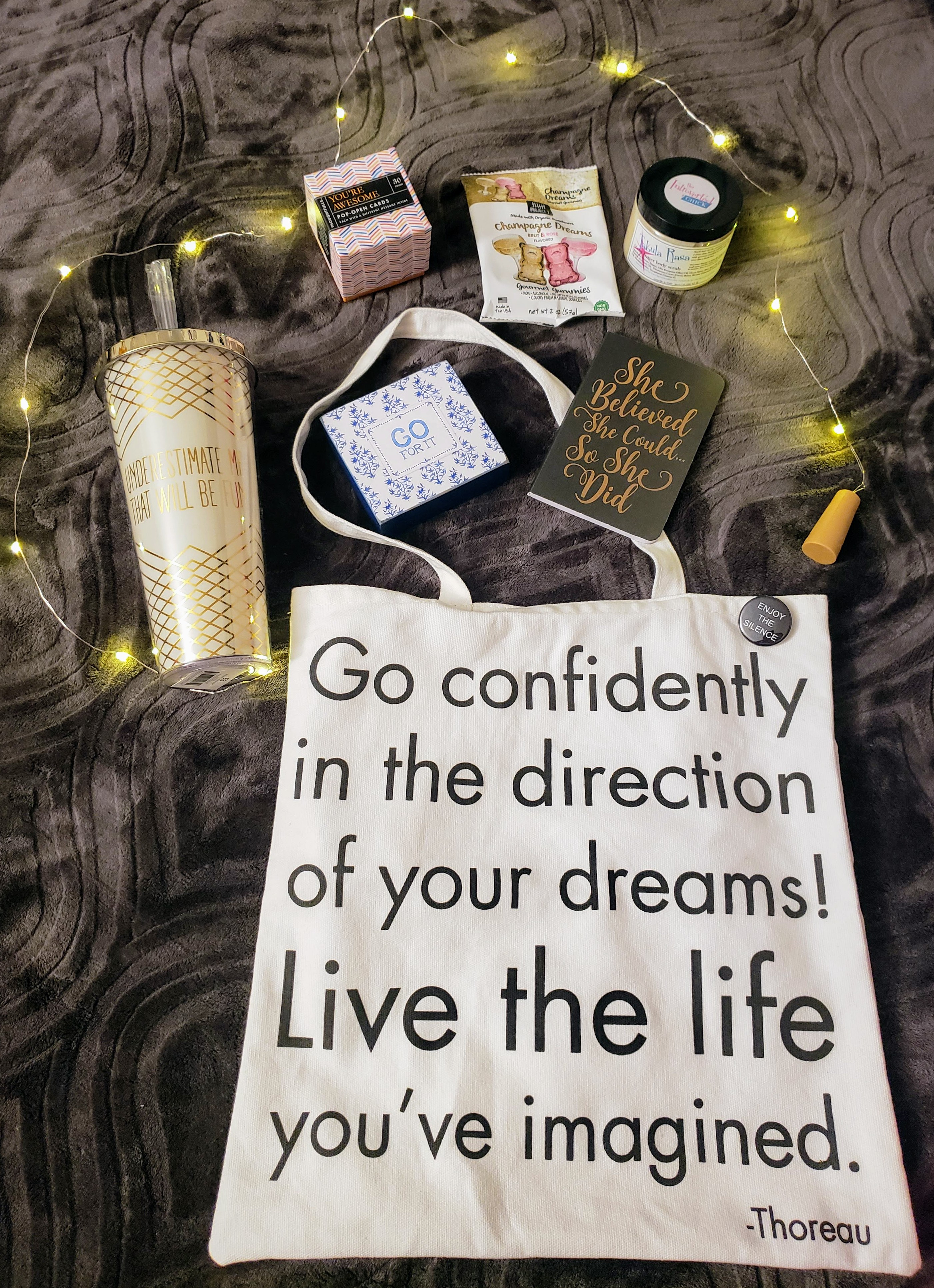 I love using fairy lights to decorate. I have them in my cubicle and around my house and have been meaning to get one similar to these for putting in a wine bottle. Also, I want to point out how awesome it was that extra batteries were included! That forethought shows how much time is spent curating each piece in this subscription box!