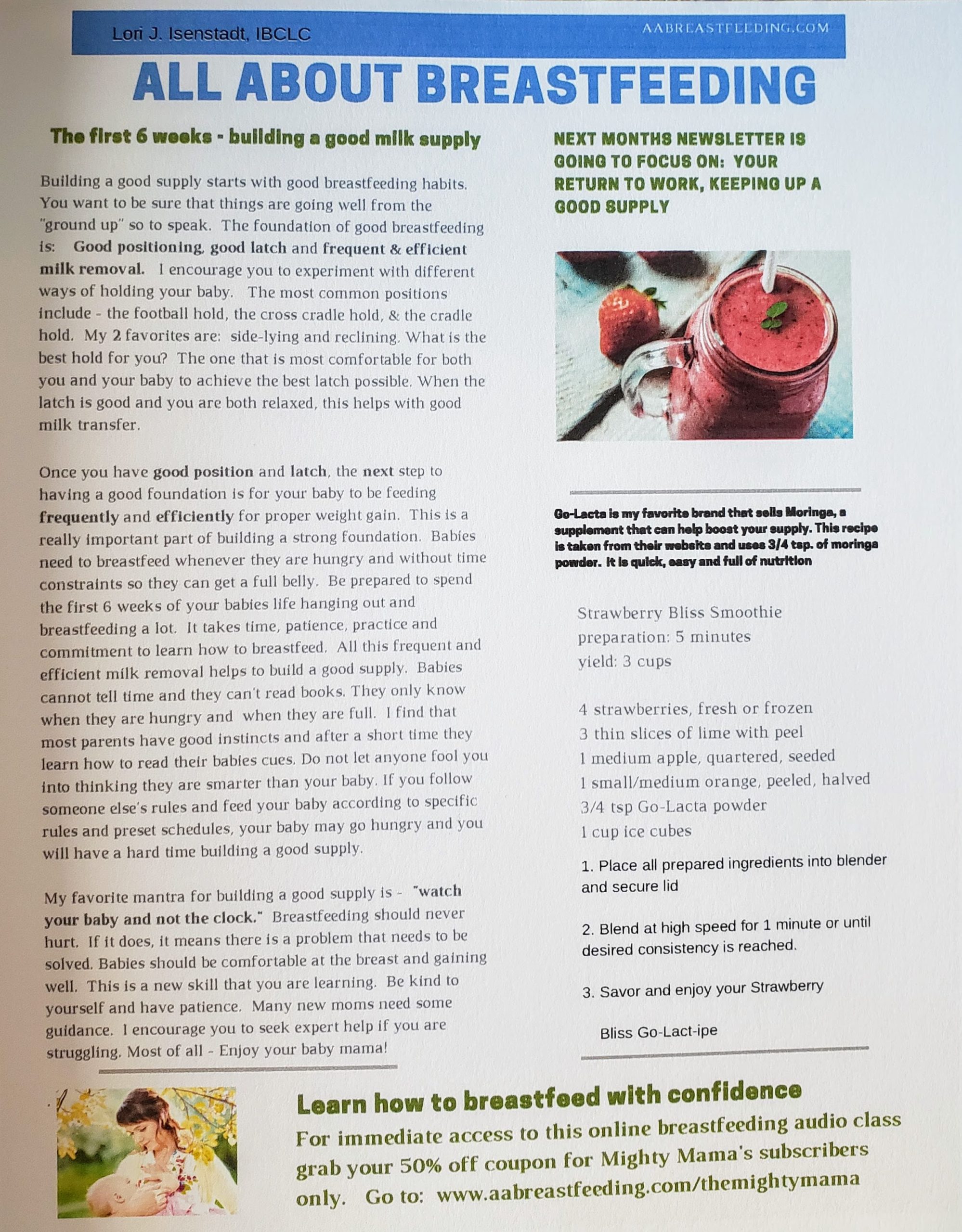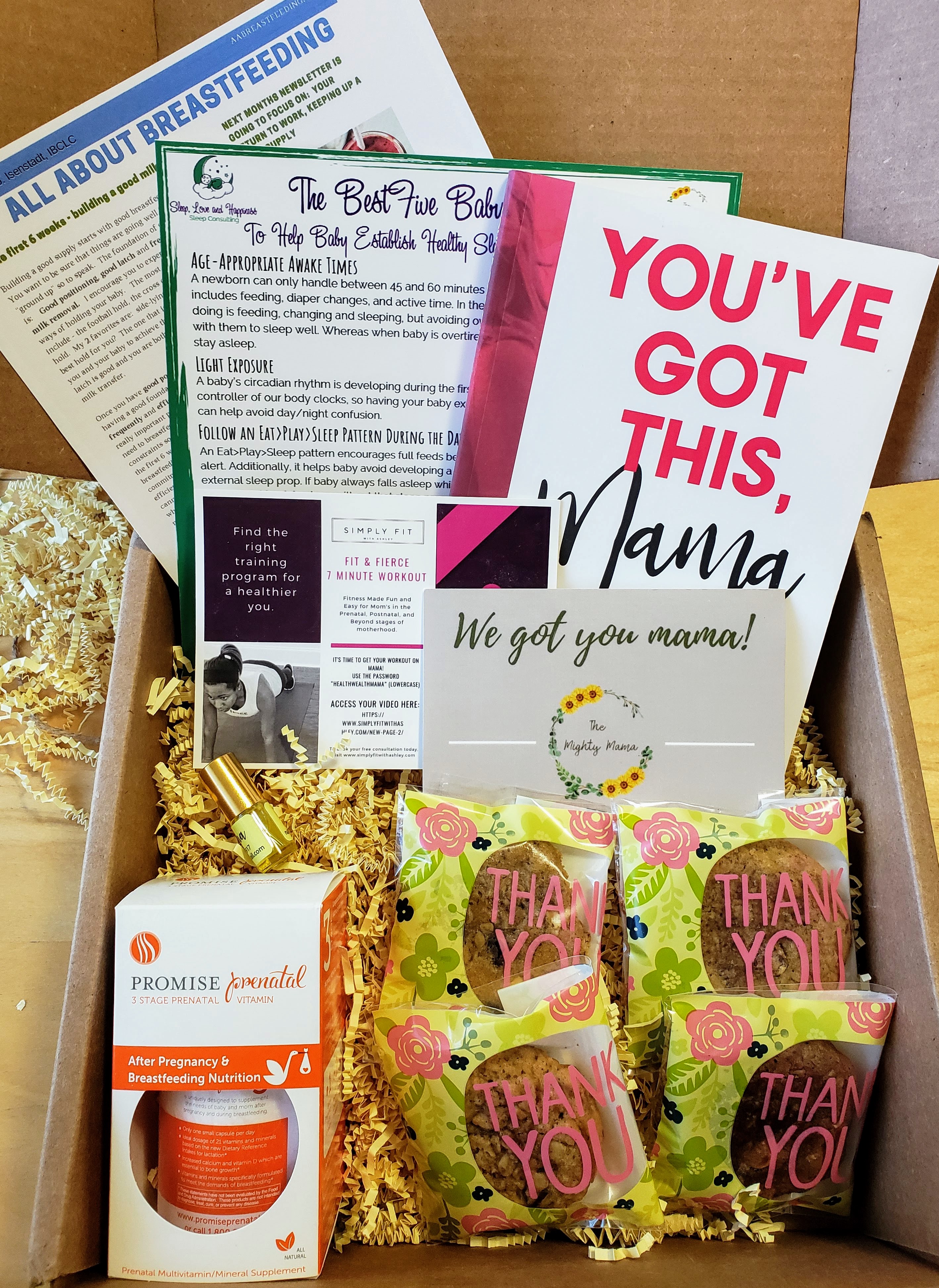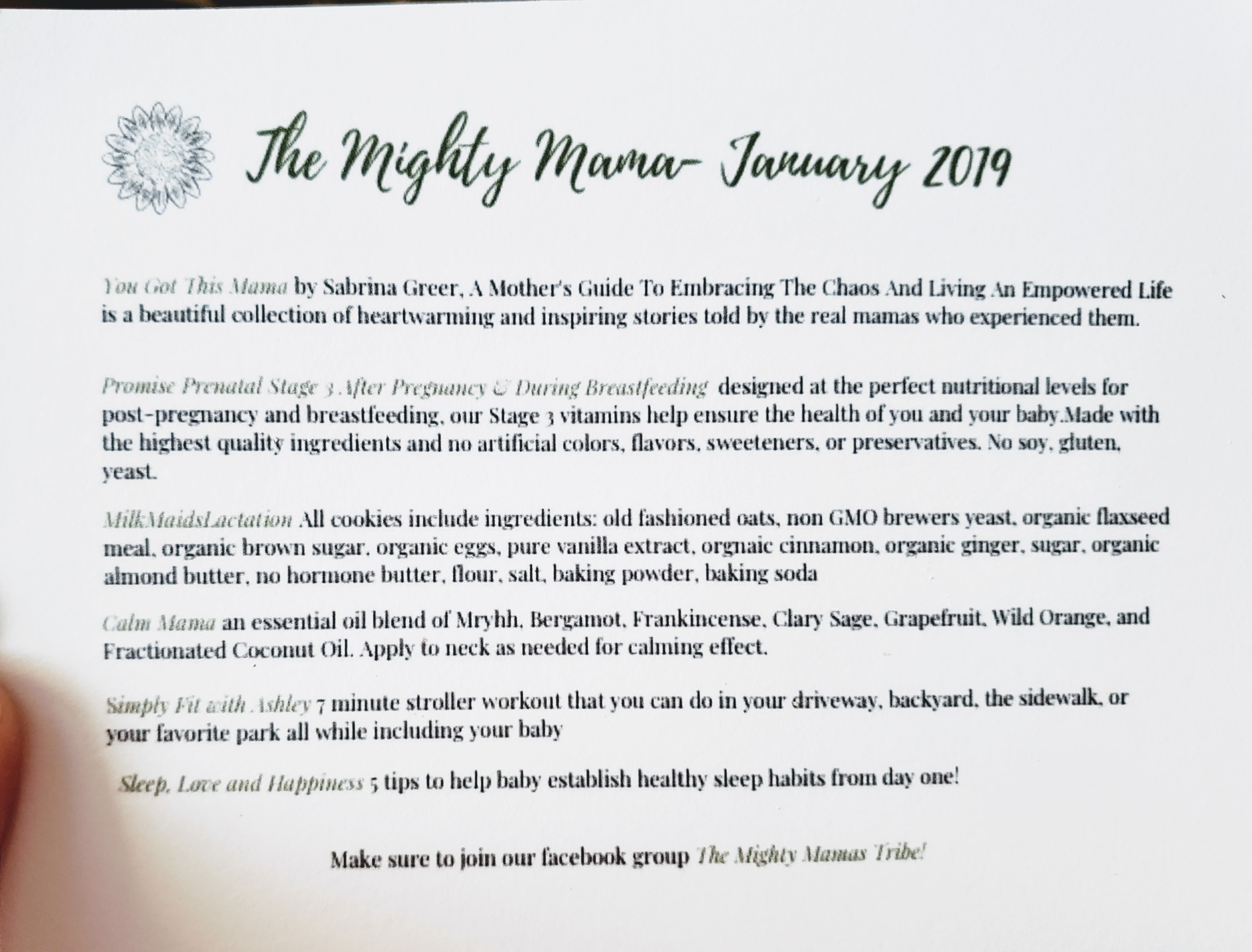 Included in The Mighty Mama subscription box included many inserts. My favorite one was the link for a postpartum work out by Simply Fit with Ashley.  I thought it was neat to include a workout for new moms since it is always important to remember to take care of yourself when you have a young child. There were also handouts with sleep tips and breastfeeding tips that would be helpful for new mamas.