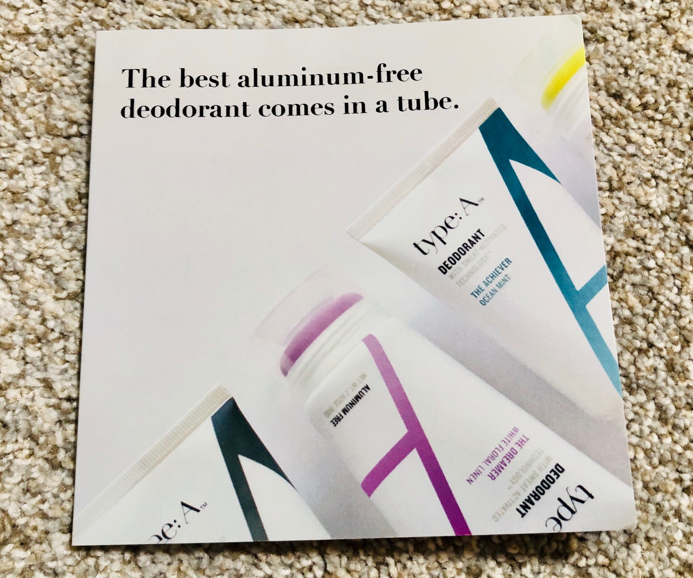 The list comparing this deodorant to others was nice to see. Since I’m not extremely familiar with why aluminum-free is better, this was helpful for someone like myself. After looking at type: A’s website, I can easily see how a natural deodorant is a way to go. If you’re slathering and applying harsh chemicals and deodorant with aluminum into your pores, that can become unhealthy in the long run.